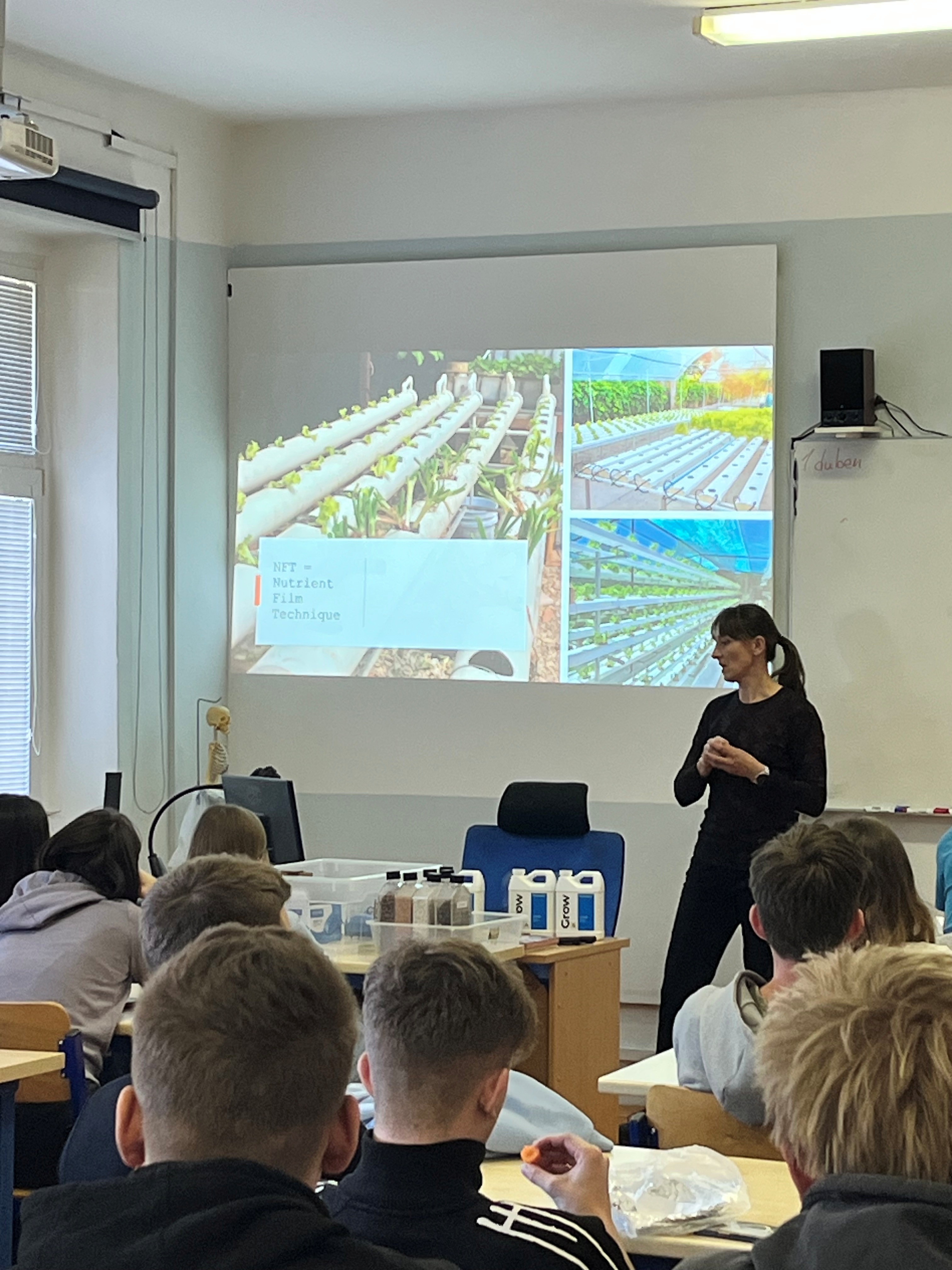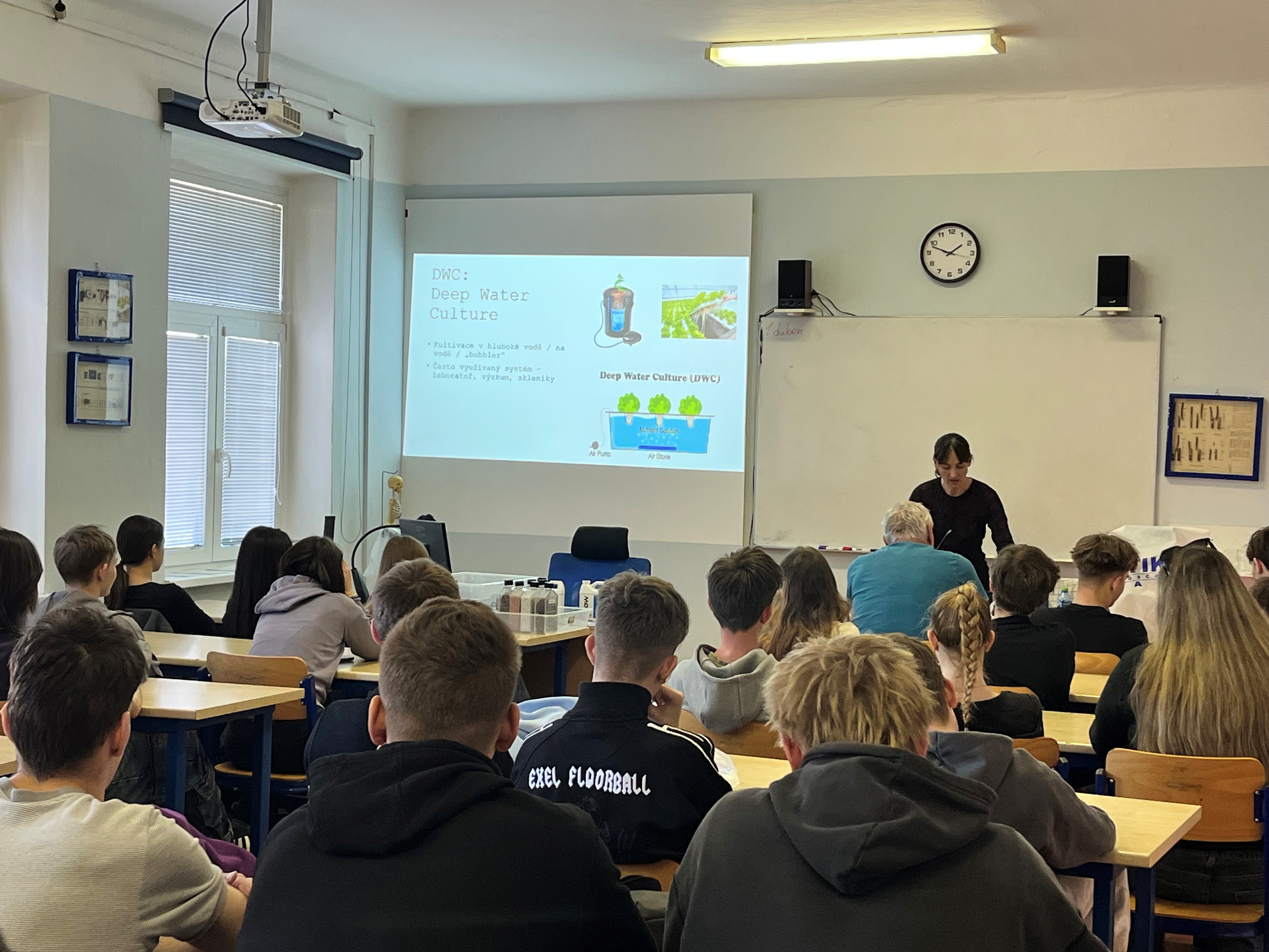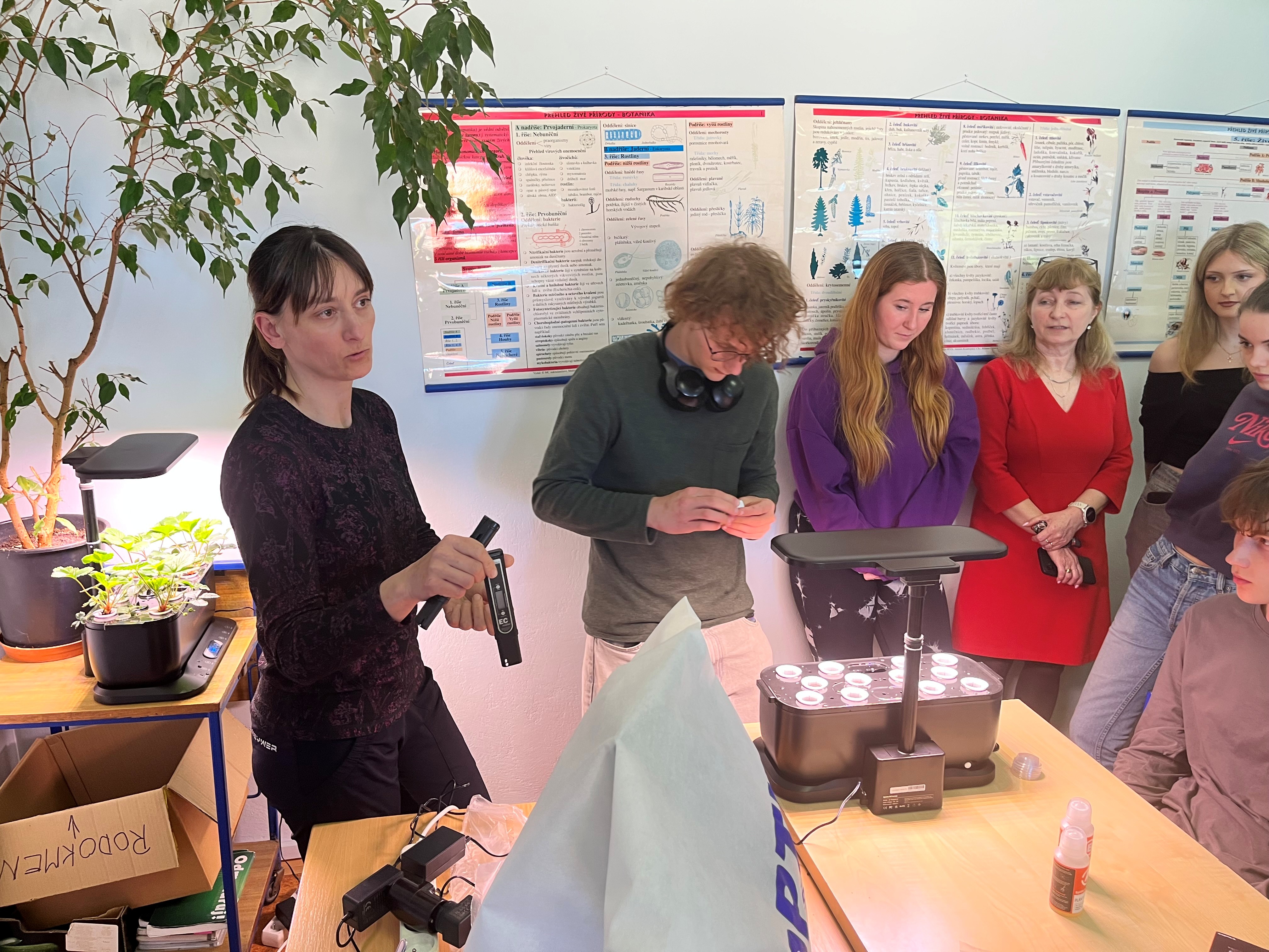 Přednášku vedla doc. Ing. Kateřina Hamouzová, Ph.D., která studentům představila moderní způsoby pěstování rostlin v řízených podmínkách a přiblížila možnosti využití hydroponie v současné praxi. Program ale nezůstal jen u teorie – studenti si mohli celý systém prohlédnout, podílet se na jeho instalaci a sami si vyzkoušet výsev rostlin.